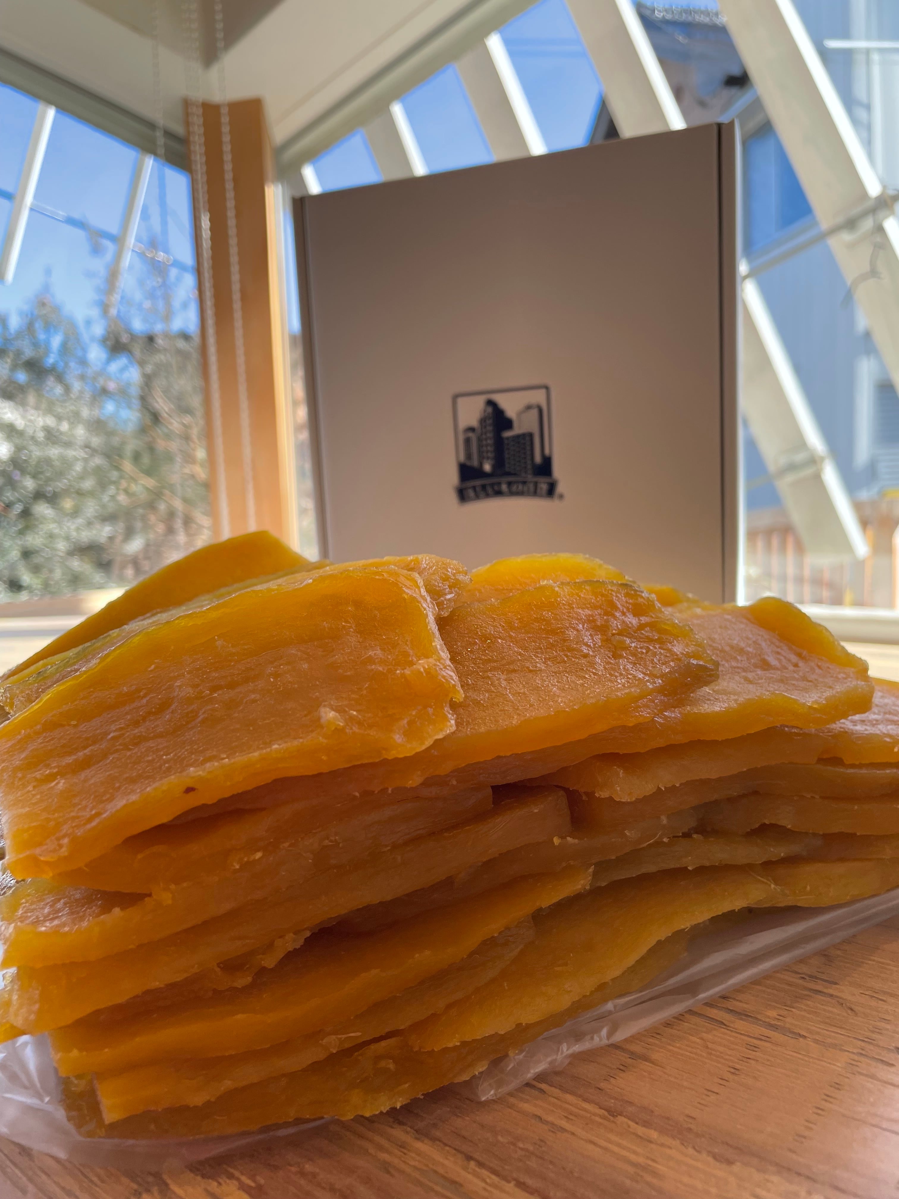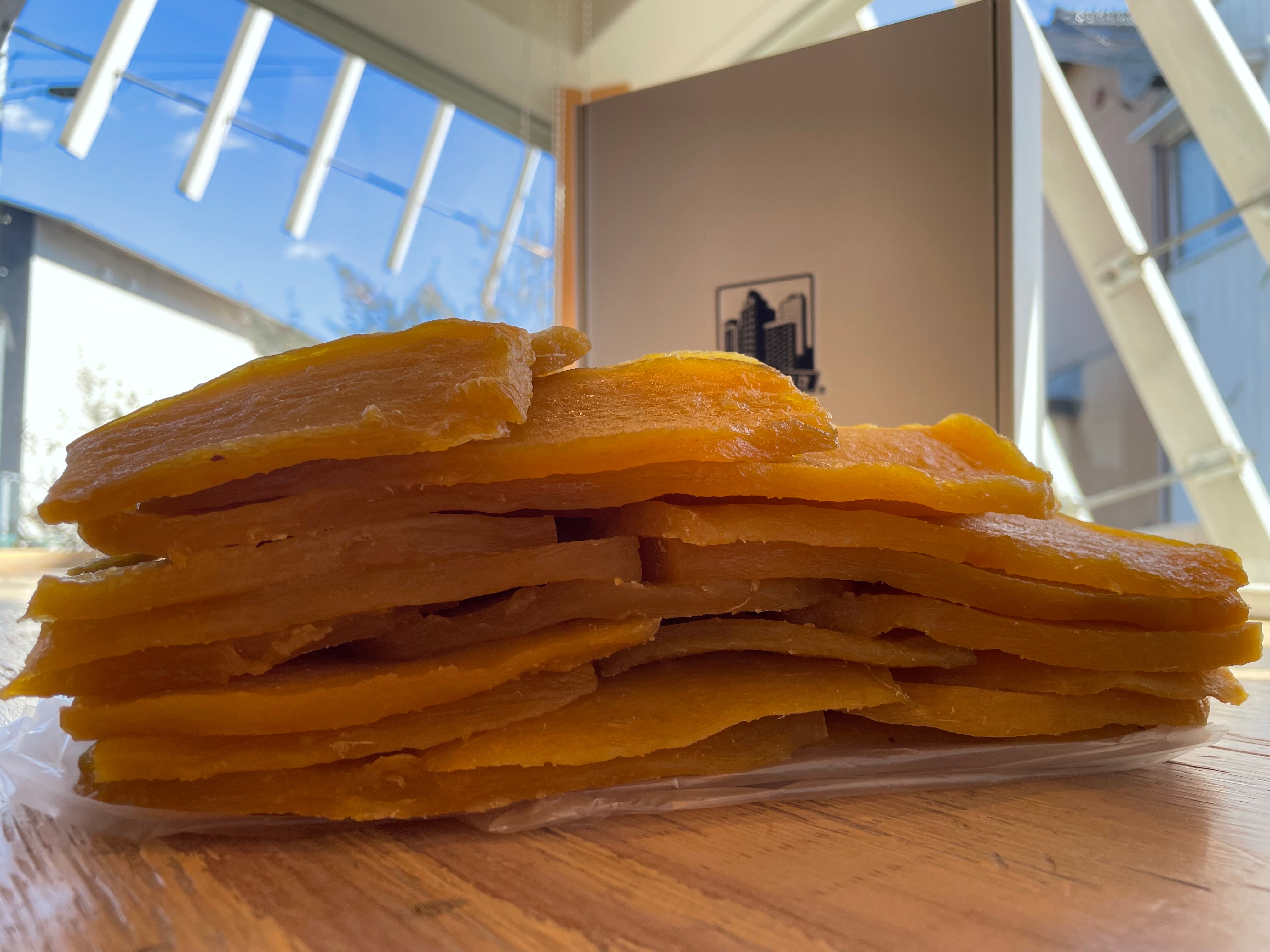濃厚な甘さ、ねっとりとした食感はまるで生キャラメルような干しいも。