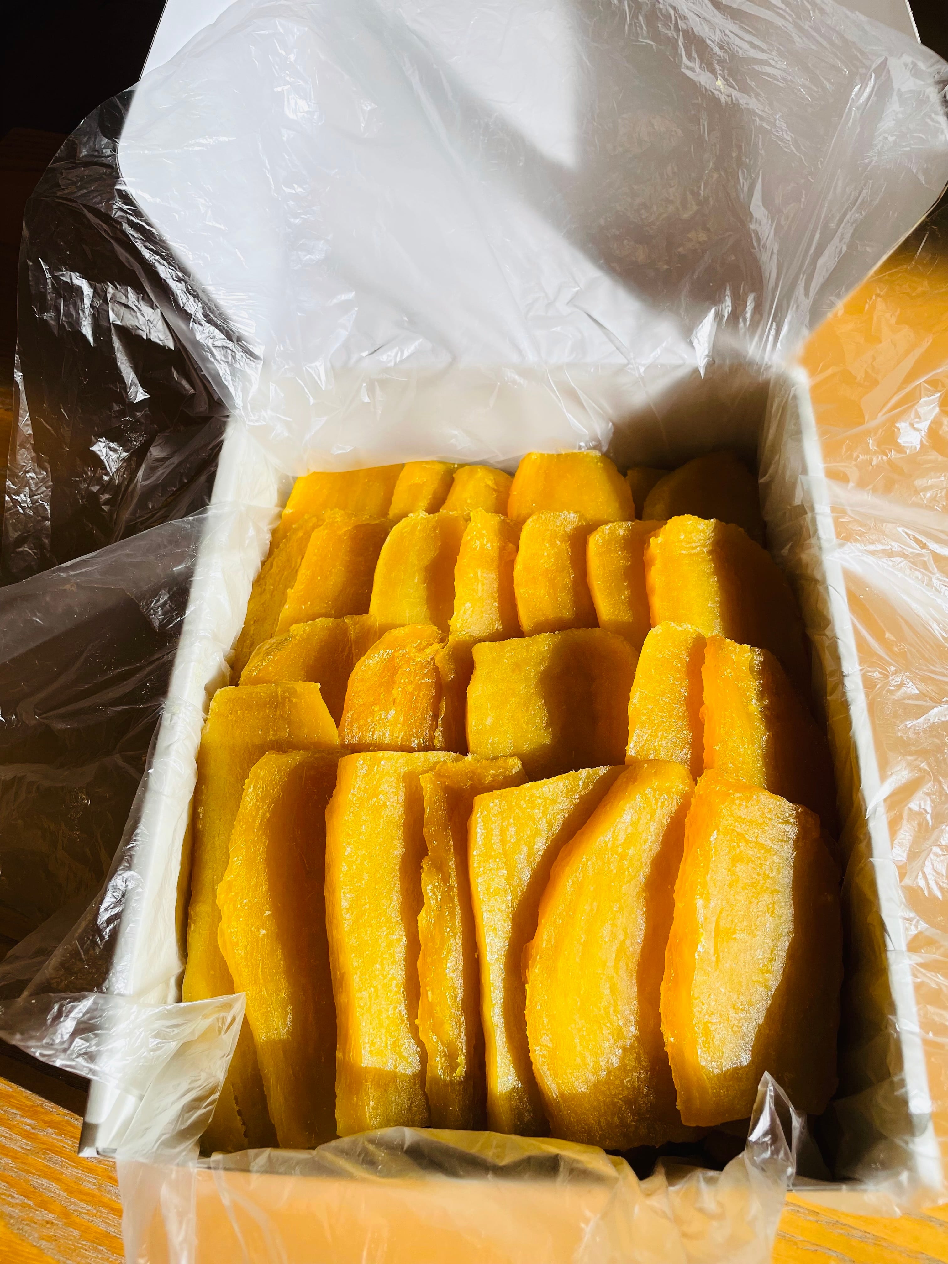 (密閉の袋には入っておりません。フィルムで包んだ干し芋を箱に入れております。)