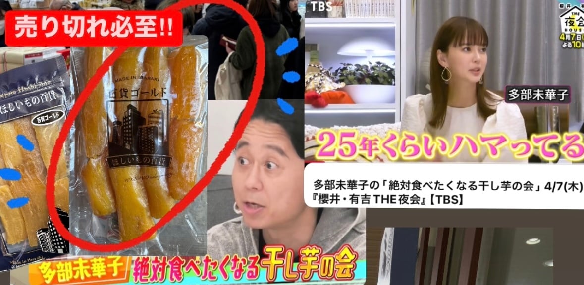 2022年4月7日TBS「櫻井・有吉THE夜会」で多部未華子さんに究極の干し芋として紹介されました。
